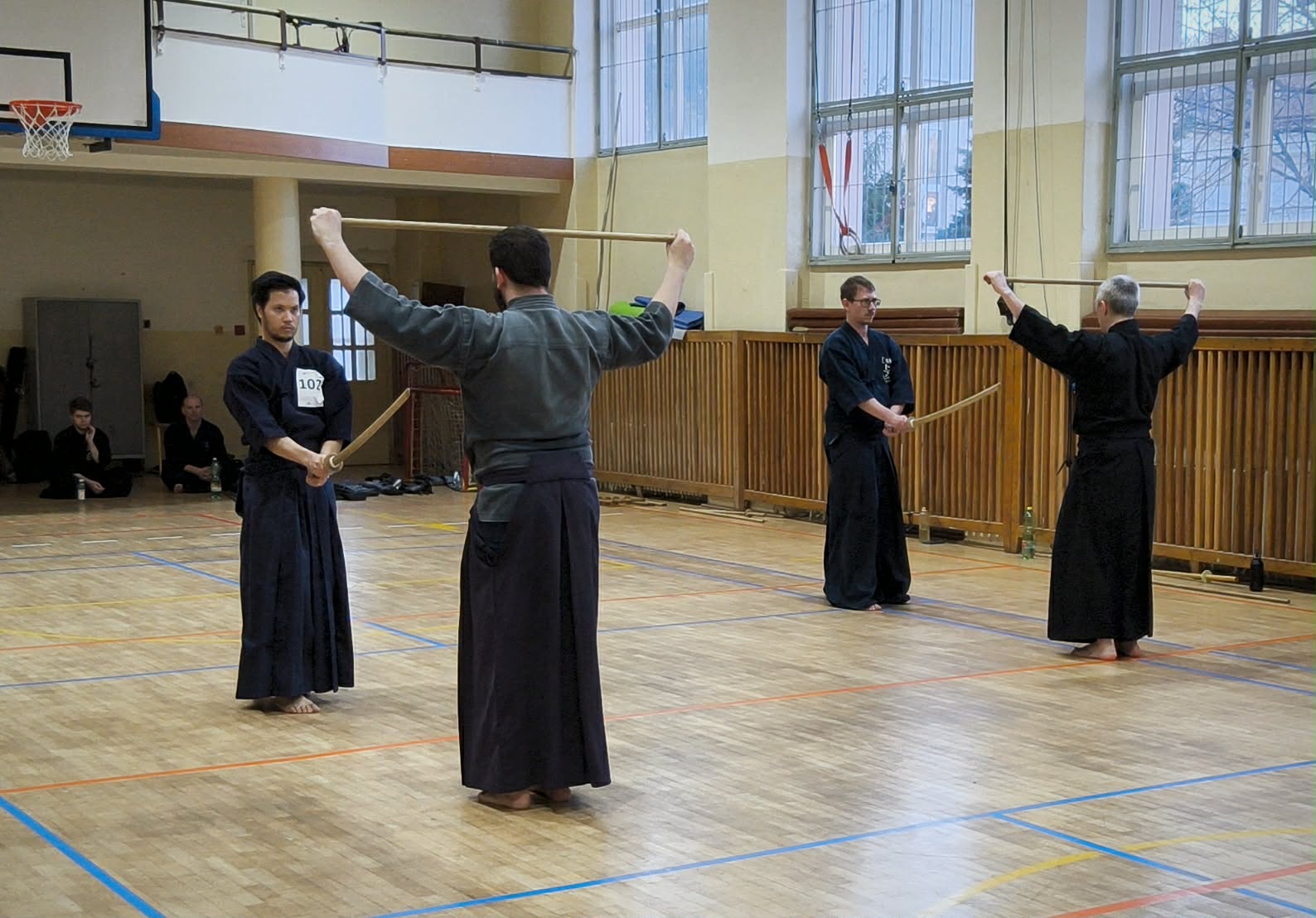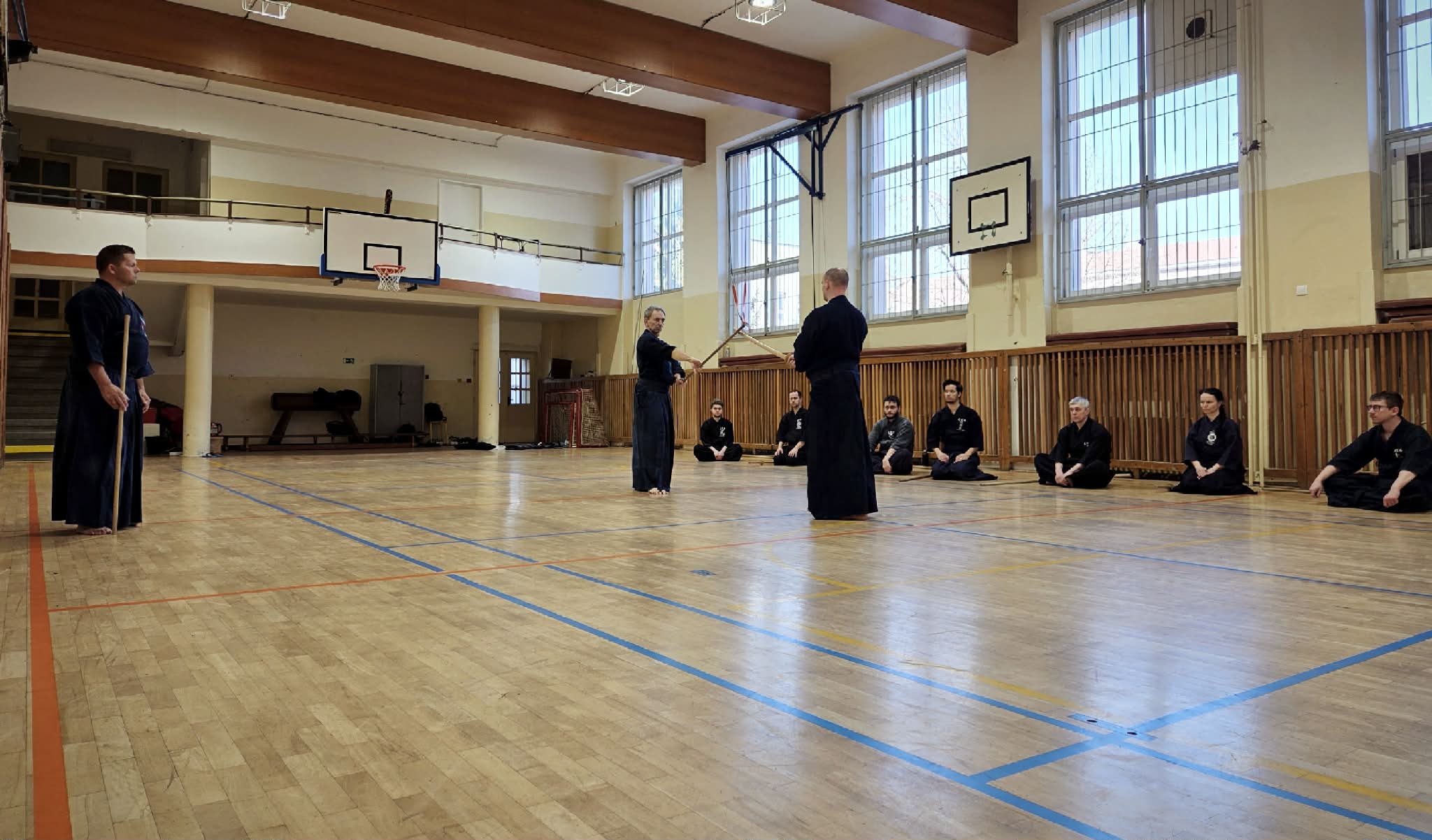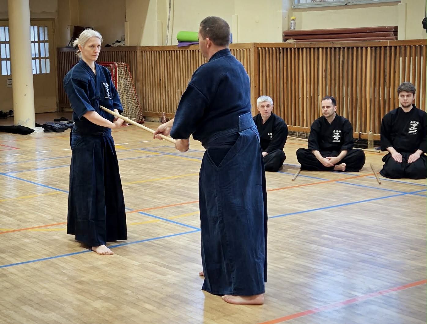 Hlavným cieľom víkendu bola príprava na rokudan skúšky, a preto sme postupne precvičili všetkých 12 ZNKR kata. Po úvodnej ukážke Beat senseia s Adrianou nasledovalo intenzívne cvičenie so striedaním partnerov, vďaka čomu mal každý možnosť trénovať s rôznymi úrovňami a prístupmi. Atmosféra bola plná nasadenia a vzájomnej podpory. Bolo cítiť spoločnú energiu, rešpekt a úprimnú snahu pomáhať si navzájom rásť a posúvať sa dopredu.