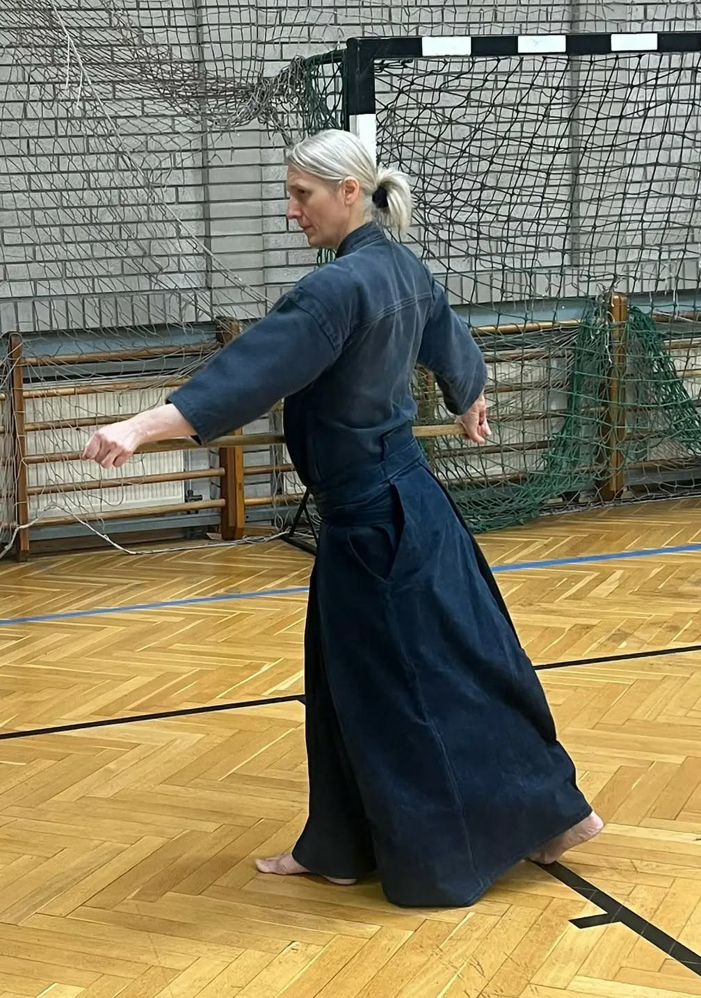 Víkend potom patril klasickému programu, ako sú Tandoku dosa a Sotai dosa. To, čo sme si vysvetlili v piatok, sme si mohli hneď v praxi overiť a lepšie precítiť. Po základných cvičeniach sme plynule prešli ku kata, od Tsuki zue až po Seigan. Adriana sa zapojila ako uchidachi a asistovala maďarskému kandidátovi na yondan v úlohe shidachi, čo bolo pre všetkých zaujímavé a inšpiratívne sledovať.